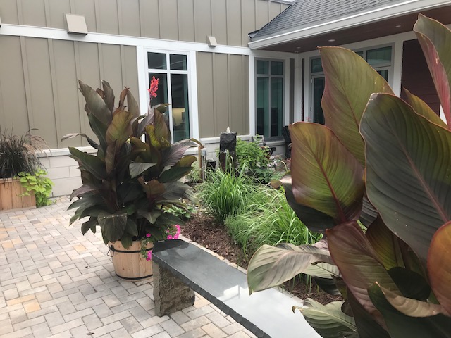 The project was perhaps a tad too ambitious and we did have significant challenges but the fabulous team of volunteers and contractors led by Greg Veldhuizen as the lead contractor transformed a boring lawn into a courtyard oasis.  The pictures shown give you a glimmer of how beautiful this new garden is.